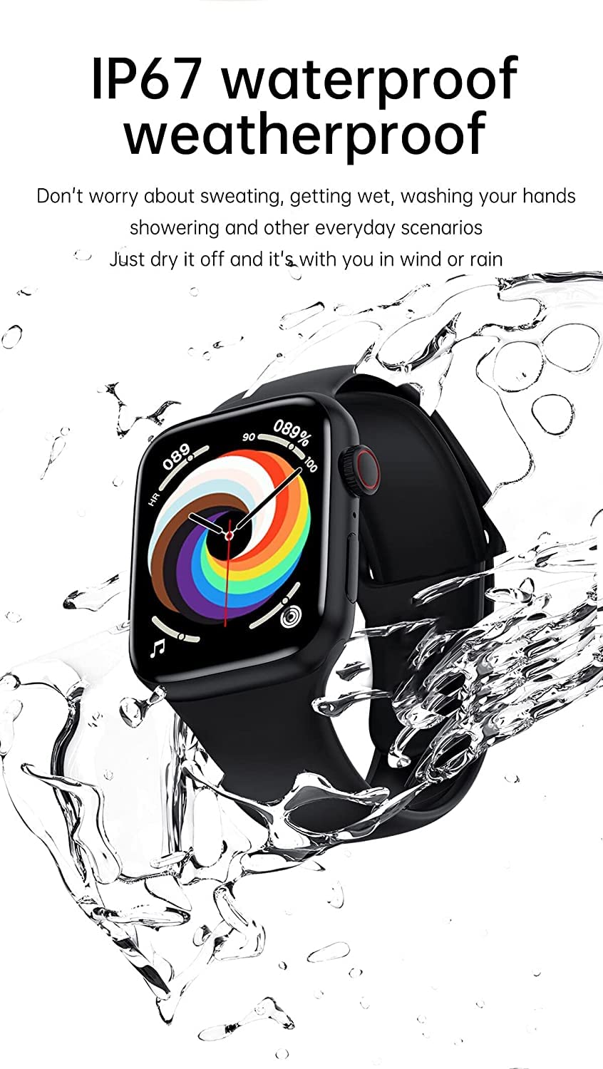 - Water Resistant -This smartwatch can withstand dust, spills, raindrops and is sweatproof too
